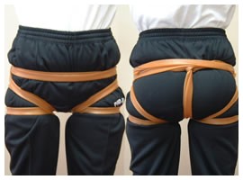 なぜ強く締めるとよいのか? 強く締めると筋肉の深部にひそむ硬結をゆるめ、関節内のうっ帯をしぼりだすからです。さらに強く締めたバンドを外すと、その反動によって硬結がゆるみ、そこへ一気に新鮮な血液が流れ込んで、新鮮な栄養素、酸素を送り届け衰えた細胞を活性させます。