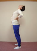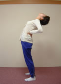 腰、お尻、下肢の後側の緊張をとり、軽い腰の痛みならこの操作で楽になる。ただし痛みがある時は無理をしない事。毎日繰り返し行う事で、かなりの効果があります。硬くなった筋肉の緩める基本になります。 |
